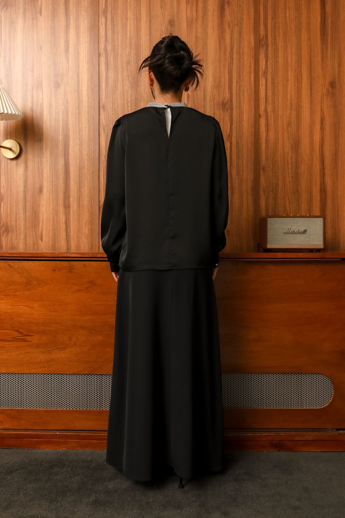Blouse berlengan puff ini dilengkapi aksen pleats di bagian depan serta kerah bulat berhias sequin dengan detail payet di dada kiri, menciptakan tampilan yang anggun dan elegan. Desainnya menghadirkan keseimbangan antara feminine grace dan formal sophistication, menjadikannya pilihan ideal untuk acara formal maupun semi-formal. Tersedia dalam tiga warna basic yang mudah dipadukan — White, Broken White, dan Black.