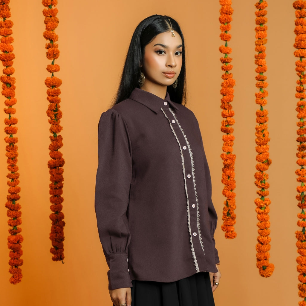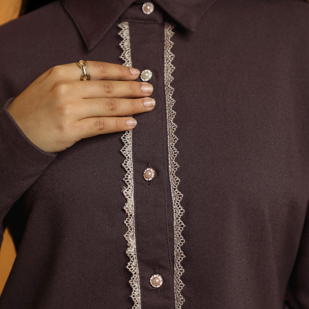 Menggunakan material Triton berkualitas premium, kemeja ini memberikan tampilan yang rapi sekaligus nyaman dikenakan sepanjang hari. Detail kerah kemeja dengan aksen renda serta kancing depan yang manis menghadirkan kesan feminin dan anggun. Dilengkapi lengan bishop dengan manset, desain ini tidak hanya mempercantik tampilan tetapi juga praktis dan memudahkan saat berwudhu.