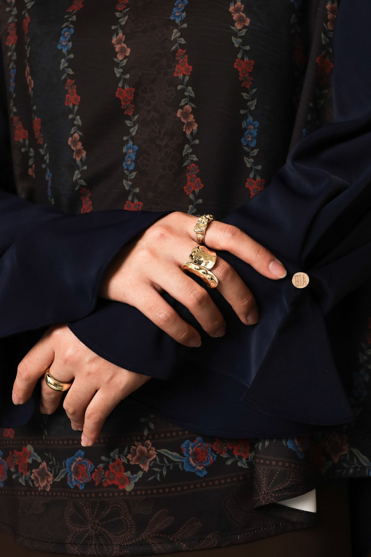Blouse berbahan Gardenia dengan motif Noir Floral, rangkaian bunga romantis yang melambangkan keabadian dan umur panjang. Motif bunga berwarna gelap ini menjadi elemen utama dalam koleksi Noir Floral, dipadukan dengan penempatan pola yang artistik dan menawan.